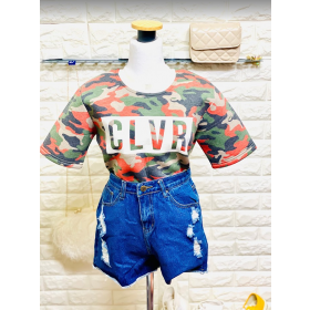 เสื้อแฟชั่น ลายทหารสีส้ม-เขียว แบรนด์ CLOTHING LOVER Free size